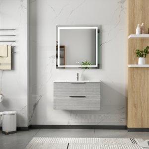 Denna moderna badrumsmöbel kombinerar stil med funktion för en bekväm vardag. Med en LED-spegel som har anti-imfunktion, dimmer och tre ljusinställningar samt en kommod med två mjukstängande lådor och ett keramiskt handfat, är detta paket både praktiskt och elegant.