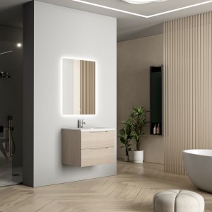 Badrumsmöbler Vega 60 cm – Ljus träimitation + Toalettpappershållare
