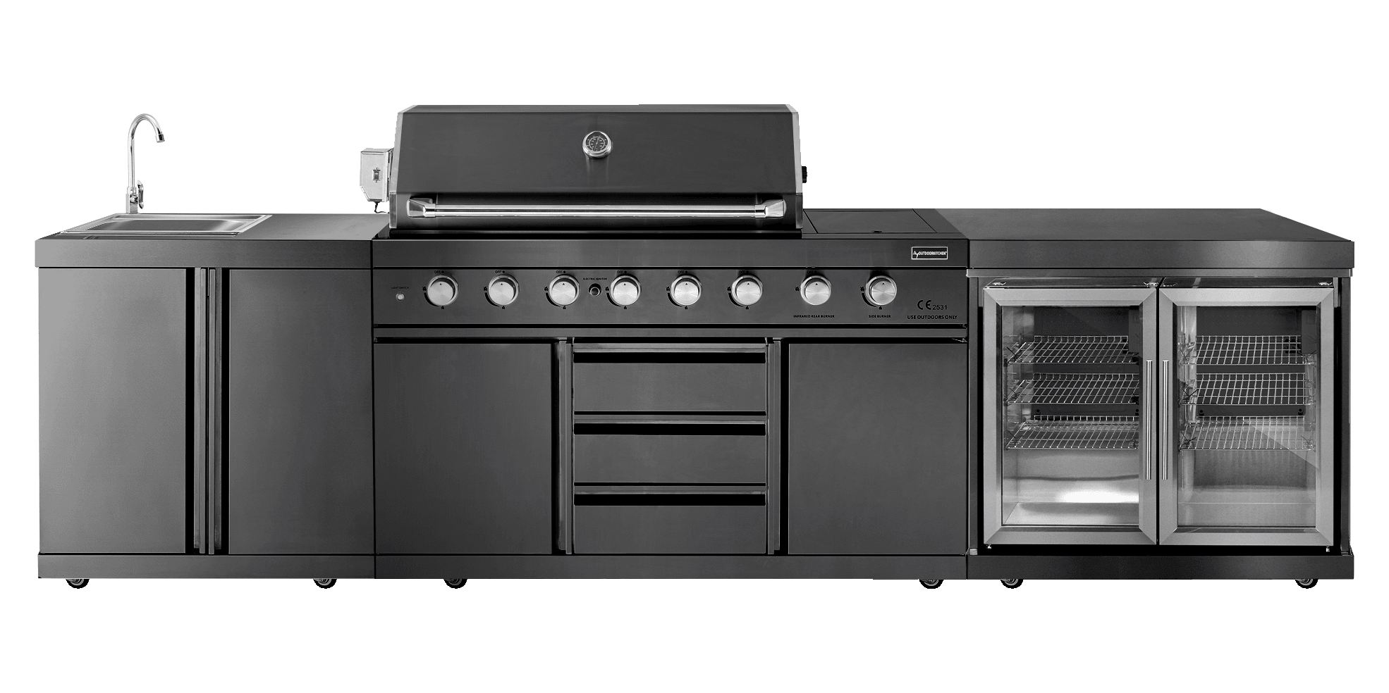 Ge din uteplats en exklusiv uppgradering med Miami – ett fristående utekök i modern och sofistikerad antracit svart finish. Köket är tillverkat i högkvalitativt rostfritt stål 304 SS, vilket ger en slitstark konstruktion som står emot väder och vind. Miami är den ultimata lösningen för dig som vill kombinera stilren design med professionell funktionalitet. Utekökspaketet innehåller vår mest exklusiva fristående gasolgrill med 6 kraftfulla brännare och avancerad infraröd PowerSear Zone, ett dubbeldörrat kylskåp på rymliga 126 liter samt en praktisk vaskmodul med både varm- och kallvattenanslutning och generöst förvaringsutrymme. Ett komplett paket för dig som vill skapa ett riktigt amerikanskt utekök i snygg, svart finish – där vår toppmodell av grillen står i centrum!