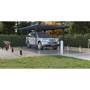 En elegant och slitstark carport som kombinerar stil och funktion i en robust konstruktion. Tillverkad av högkvalitativt aluminium med pulverlackering och förstärkta stålfästen för ökad hållbarhet och elegans.