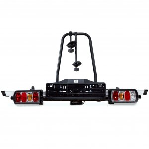 Denna praktiska och säkra cykelhållare är speciellt utvecklad för elcyklar och kan bära upp till två cyklar med en total kapacitet på 60 kg. Dess baklyktor garanterar säker transport även i mörkret, och den integrerade låsfunktionen skyddar både cyklarna och hållaren mot stöld.