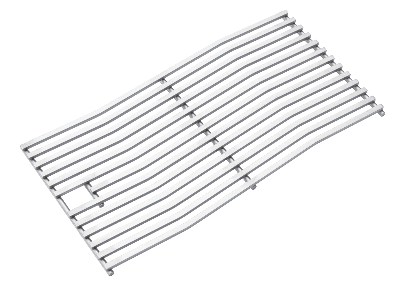 Detta grillgaller i rostfritt stål är utformat för att ge både stabilitet och hög prestanda vid grillning. Med en matlagningsyta på 23,5 x 43 cm och en kraftig tjocklek på 15 mm passar gallret perfekt när du vill arbeta med hög värme och uppnå ett jämnt grillresultat. Den vågformade formen är utformad för att maximera kontakten mellan råvara och grillgaller, vilket ger tydliga grillränder, stabil placering av maten och ett jämnt, kontrollerat resultat – perfekt för klassisk grillning på hög värme.