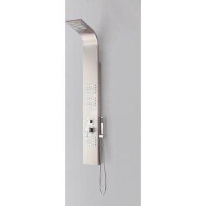Denna silverfärgade duschpanel erbjuder en lyxig duschupplevelse med takdusch, ryggdusch och handdusch. Med sina imponerande egenskaper är detta ett utmärkt val för att förvandla din dusch.
