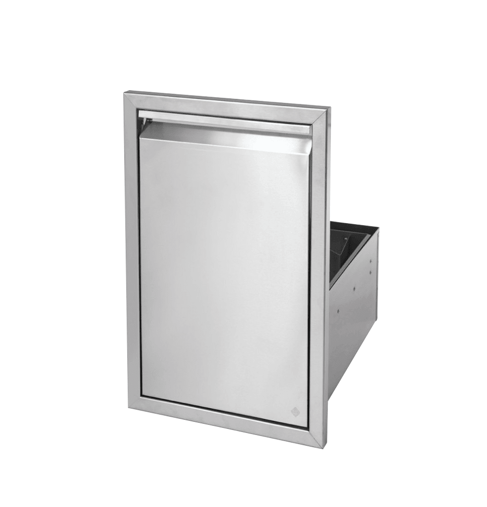 Praktiskt inbyggbart förvaringsskåp med stilren finish i rostfritt stål 304 SS – för bästa kvalitet. Lämpar sig som gasolskåp för förvaring av gasolflaskan, men går tack vare sin smarta uppbyggnad även utmärkt att användas för förvaring av soptunnan eller andra behållare som man gärna vill förvara ståendes i sitt utekök. Gasolskåpet är designat som en låda som man drar ut hela vägen och kan enkelt vrida på gasolen eller lyfta tuben rakt upp när man behöver byta tub.