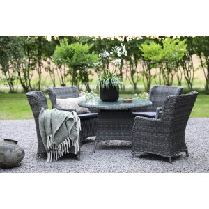 Jacksonville utematgrupp med fyra fåtöljer i grå konstrotting + Textilimpregnering för utemöbler