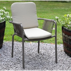 Denna robusta Lincoln stol i grått kommer med en bekväm beige dyna som passar perfekt på din uteplats eller balkong. Tillverkad av aluminium är denna stol både stabil och vädertålig, vilket gör den idealisk för utomhusbruk.