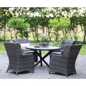 Matgrupp Mercury: Scottsdale runt bord i Shabby Chic grå inklusive 4 st Jacksonville fåtöljer grå konstrotting + Textilimpregnering för utemöbler