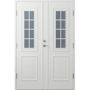 Denna parytterdörr i serien Nathalie är en praktisk och stilren ytterdörr som erbjuder både säkerhet och energieffektivitet. Med asymmetriska dörrblad och möjlighet att anpassa färg, mått och glastyp efter behov passar den perfekt för både moderna och klassiska hem.
