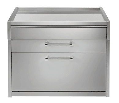 Italienska Steel ger oss en modern och robust förvaringsmodul med 3 utdragbara lådor och en stor arbetsyta i rostfritt stål. Lådorna är perfekta för förvaring av grillbestick, salladsbestick, tallrikar och liknande. Modulen kommer i samma mått som övriga Steel-moduler för att de enkelt ska gå att bygga ihop till ett fulländat utekök.