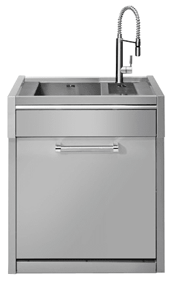 Italienska Steel ger oss en modern modul med diskbänk och kran i toppklass. Modulen kommer i samma mått som övriga Steel-moduler för att de enkelt ska gå att bygga ihop till ett fulländat utekök. Ett måste i ditt utekök!