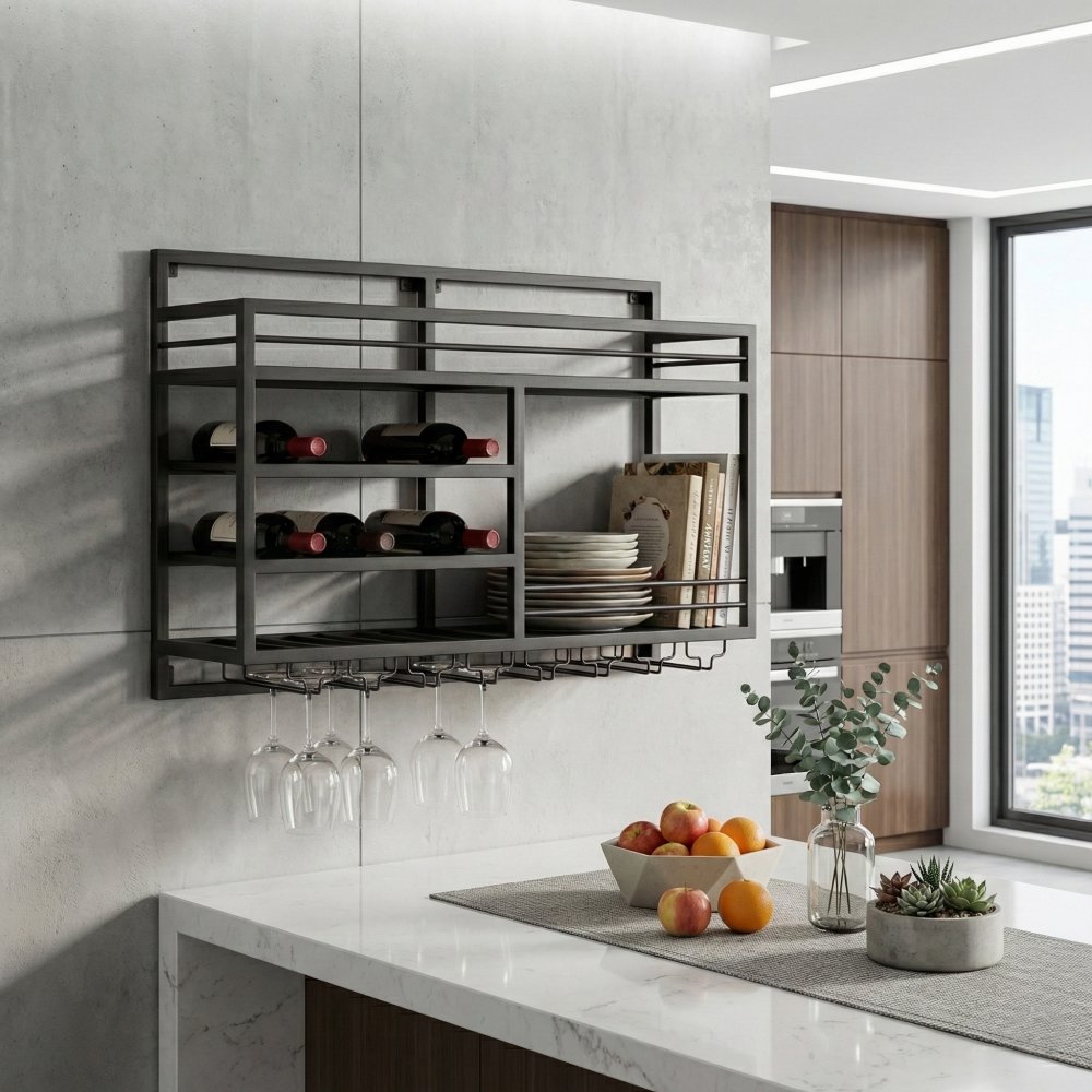 Stilren vägghängd vinhylla för smart och elegant vinförvaring