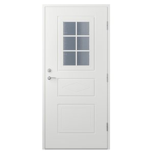 Ytterdörr Lillian med glas med sitt klassiska svenska utseende har ett fint ljusinsläpp av det rektangulära fönster. Både ljuset och dörrens karaktär bidrar till en trevlig och välkomnande miljö i entrén. Dörren är väldekorerad med spårfrästa speglar och linjer som ramar in fönstret som passar bra in i den traditionella eller klassiska miljön. Spröjsen är fasta och glaset finns i valbara utföranden. Många ytterdörrar på marknaden har en slät insida, men med denna dörren får du både insida och utsida med det fina frästa mönstret. Dessutom har den dubbel tätningslist för extra isolerande effekt, låskista och justerbara gångjärn inkluderat. Du har möjlighet att välja vilken färg du vill (med NCS-kod). För att både kunna matcha husets yttre och din inredning på insidan kan du välja olika färger på ytterdörr…