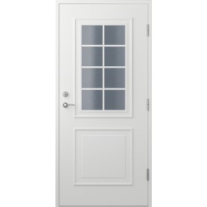 Ytterdörr Nathalie med glas är en klassisk och elegant dörr som ger ett fint naturligt ljusinsläpp i din entré. Med sin fina inramning av formpressat listverk och speglar är denna dörr ett stilfullt tillskott till ditt hem, oavsett om det är en sommarstuga eller ett stort mansion. Dörren finns i flera färger, så du kan enkelt matcha den med din inredning både på insidan och utsidan. Den är välisolerad med dubbla tätningslist och har fabriksmonterade gångjärn för smidig användning.