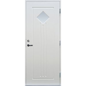 Ytterdörr Oslo är en elegant design med romb-fönster och spårfrästa mönster som ger en rik detaljrikedom. Dörren kombinerar traditionell stil med modern twist och passar perfekt för olika typer av hem.